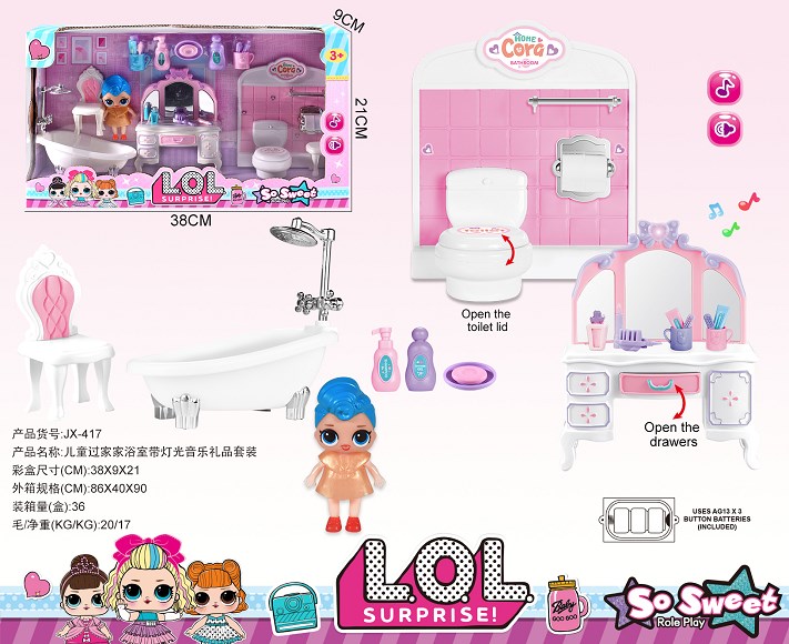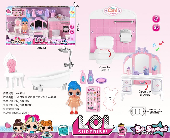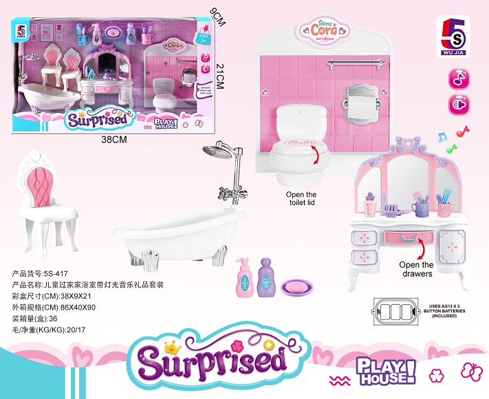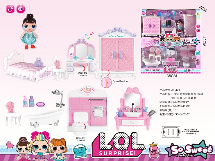 惊喜娃娃房间梳妆台+浴室双层过家家套装