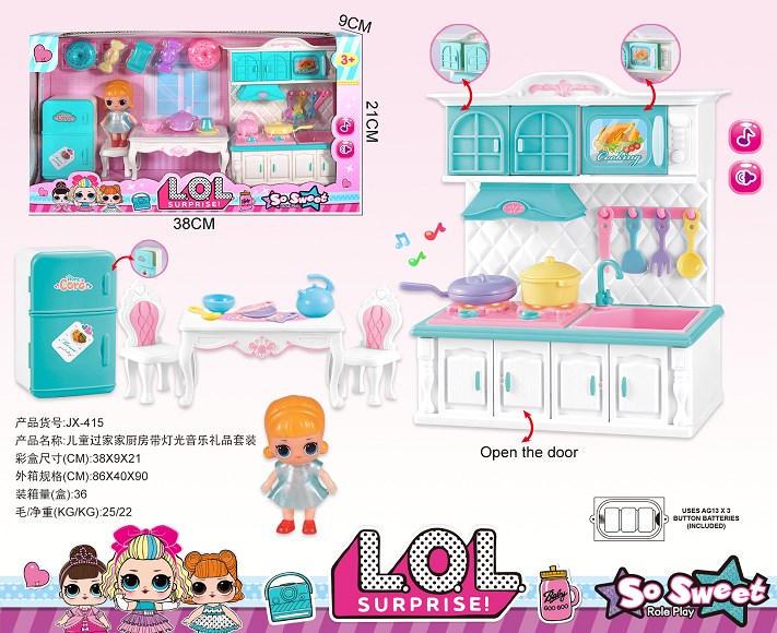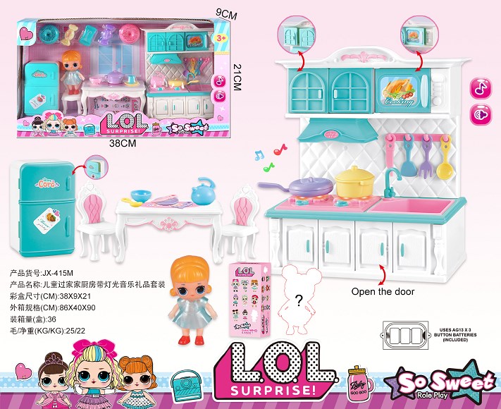惊喜娃娃厨房餐具+房间梳妆台双层过家家套装(带盲盒)