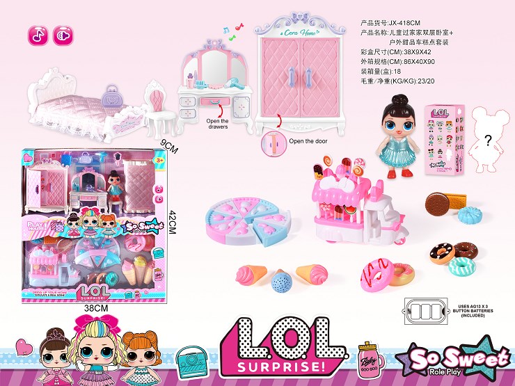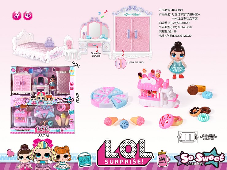 惊喜娃娃房间梳妆台+户外雪糕车双层过家家套装