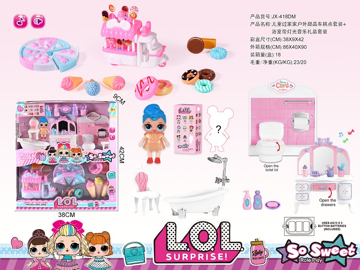 惊喜娃娃浴室+户外雪糕车双层过家家套装