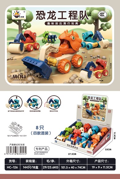 恐龙工程队 (按压功能,2款形象霸王龙、三角龙,搭配工程车头挖机、压路、推土、抓料)