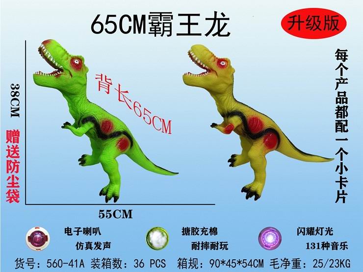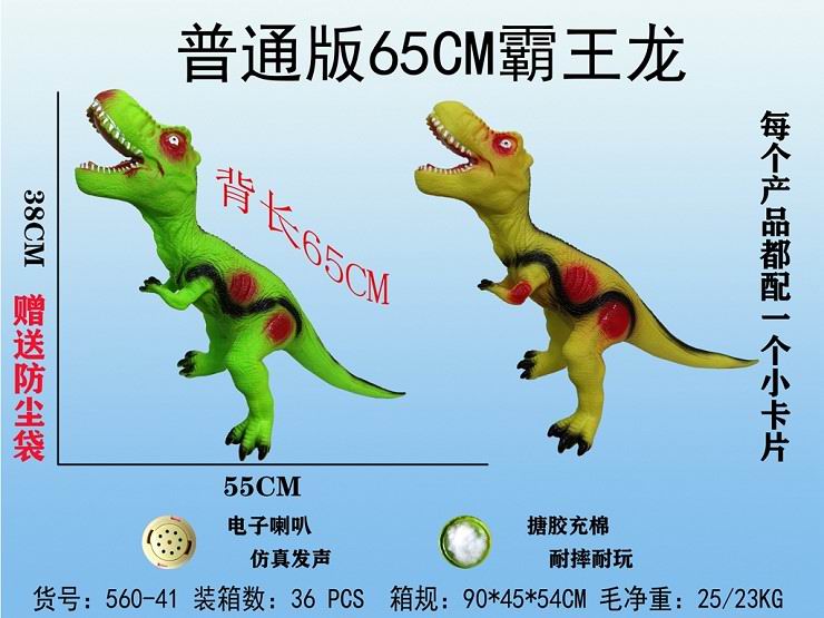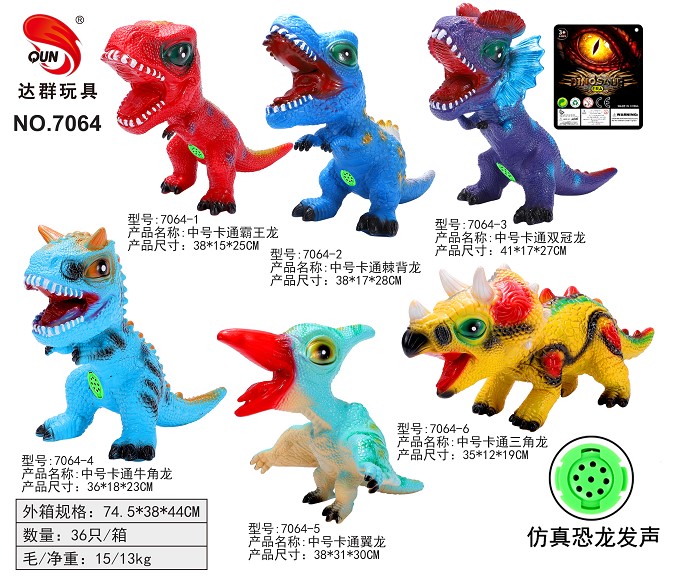 中号搪胶卡通恐龙6款混装(带IC叫声)