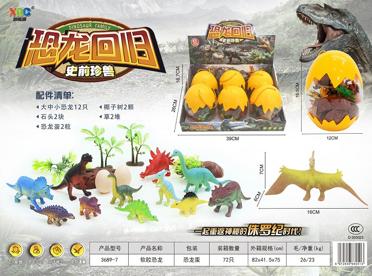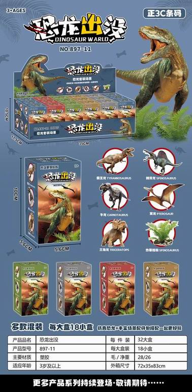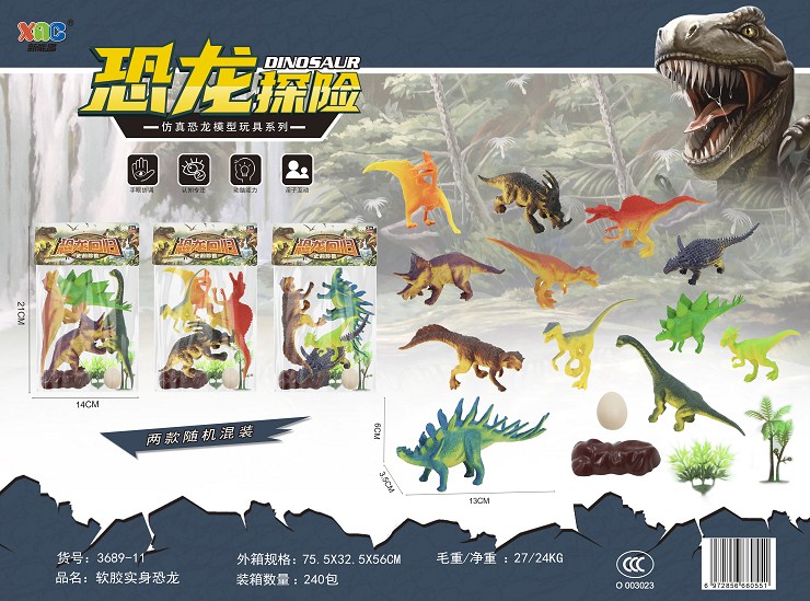 搪胶场景恐龙玩具(6款混装带IC叫声)
