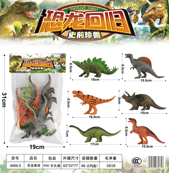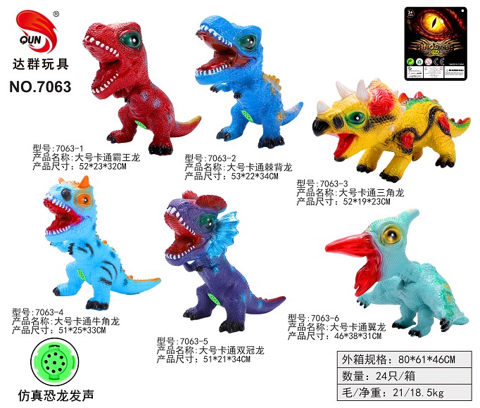 大号搪胶卡通恐龙6款混装(带IC叫声)