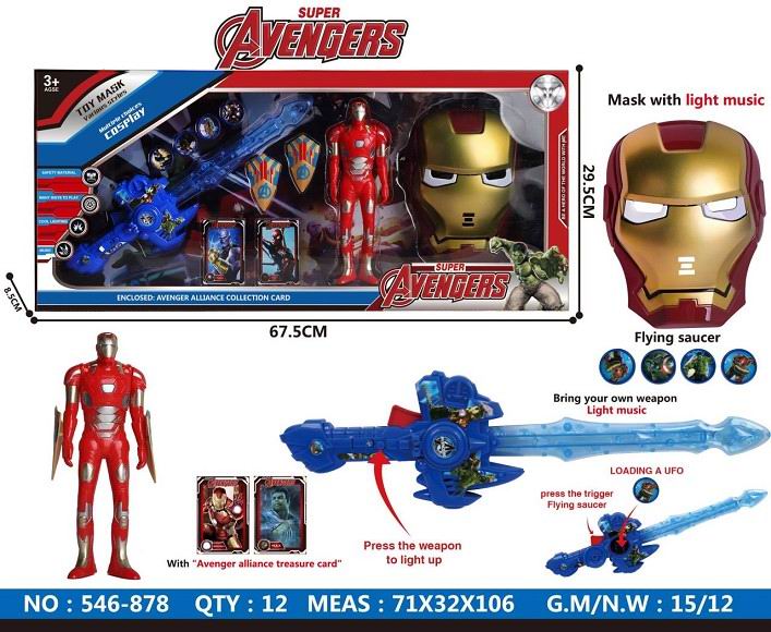 钢铁侠灯光音乐面具配钢铁侠变形机器人(包电3颗AG13)