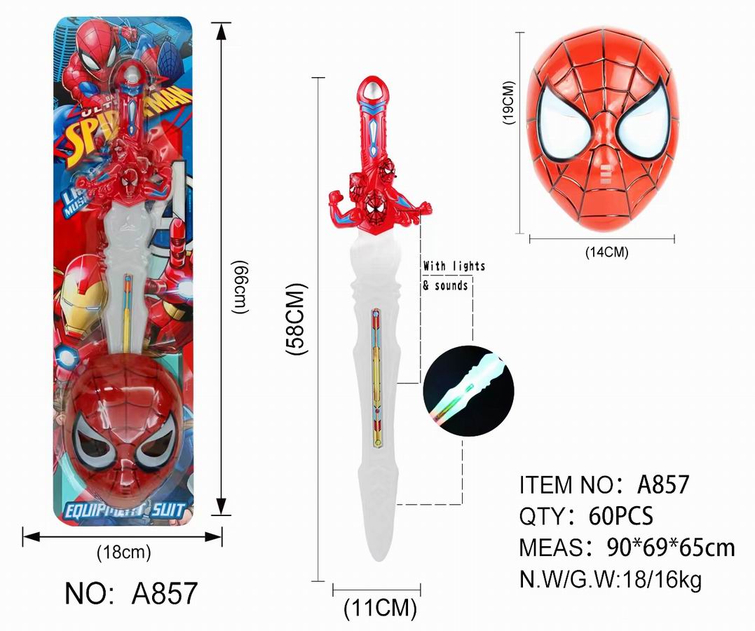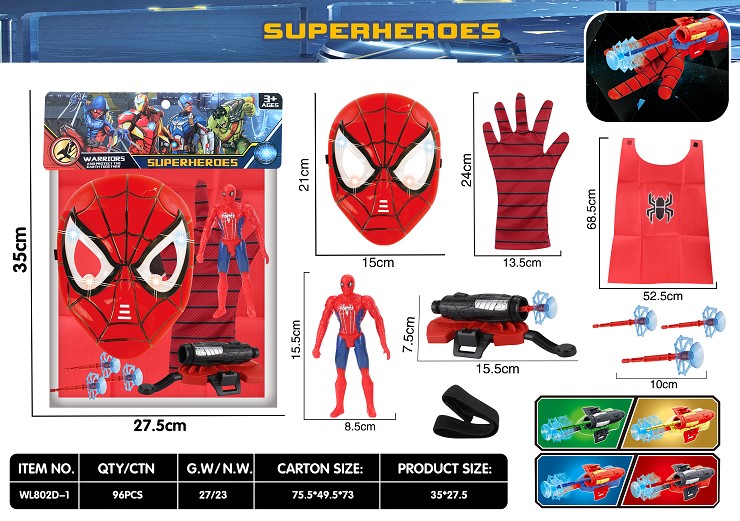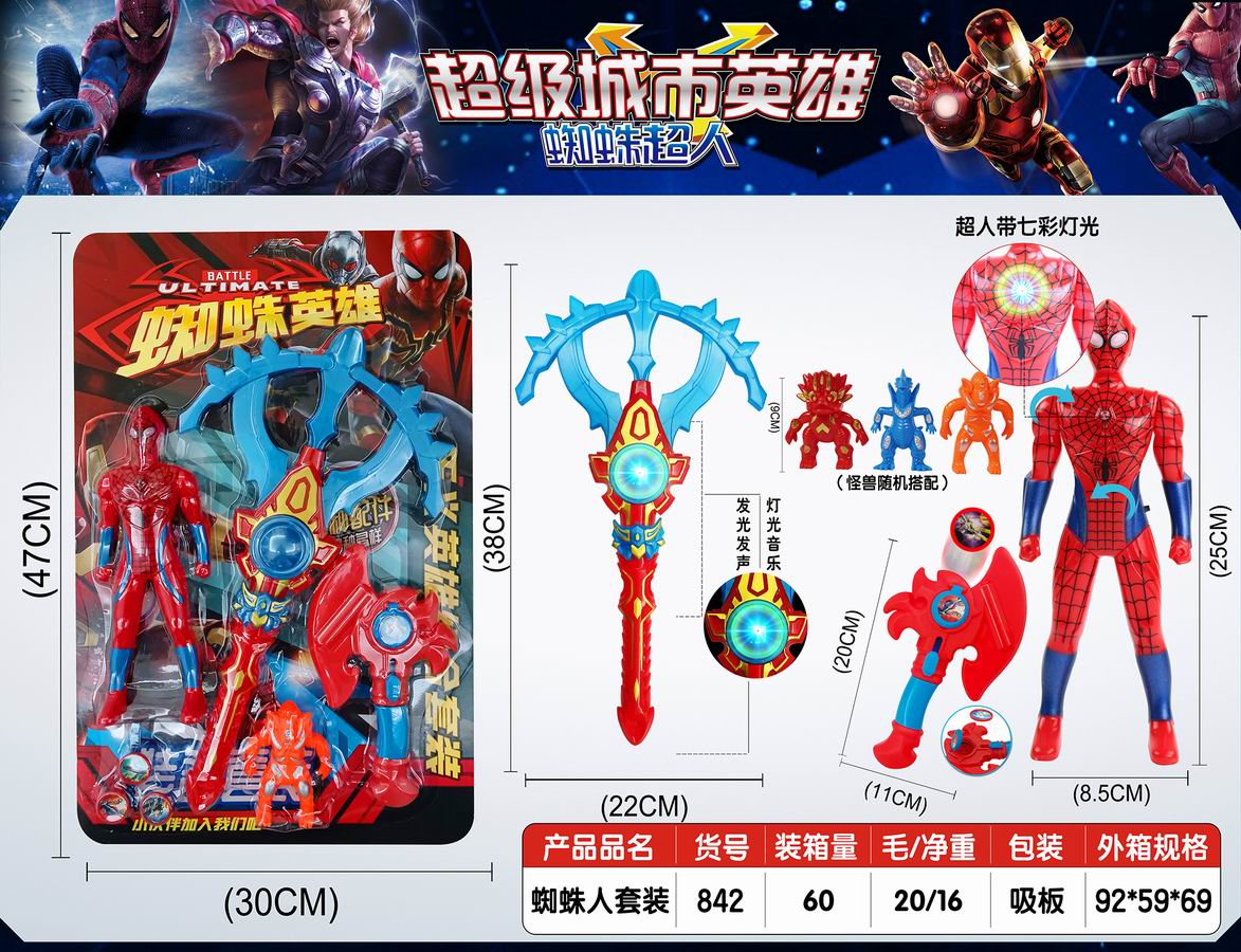 蜘蛛侠灯光面具+灯光公仔+披风+弹射器带手套