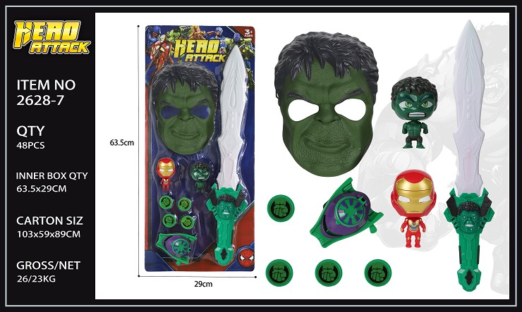 复仇者联盟:绿巨人灯光音乐剑配无功能面具+弹射器+折叠公仔