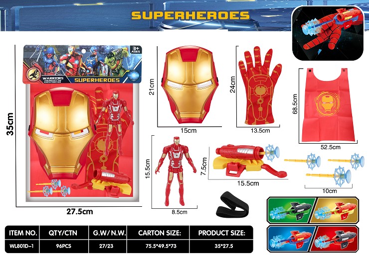 钢铁侠灯光面具+灯光公仔+披风+弹射器带手套